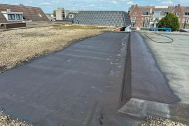 Na het verwijderen van het grind is het betreffende dakvlak grondig gereinigd en voorbereid. Vervolgens is een laag vloeibaar rubber aangebracht, waarmee de naden en aansluitingen volledig zijn afgedicht. Deze flexibele coating vormt een naadloze waterdichte laag die meebeweegt met temperatuurverschillen en voorkomt dat er opnieuw lekkage ontstaat.