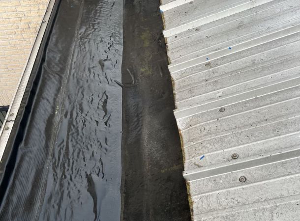 Deze goot in Groningen was al sinds jaar en dag lek. De opdrachtgever wilde graag nu een definitieve oplossing. Voortman Coating & Onderhoud heeft hier een vloeibare afdichting aangebracht over de bestaande dakbedekking. Resultaat een100% waterdichte en UV bestendige afdichting.