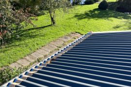Op dit dak hebben we de edgepeel en roest verwijderd van de plastisol dakbeplating. Hierna behandeld met Liquid roofing.