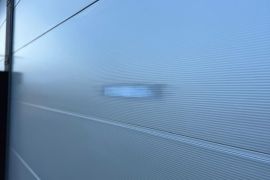 Na het herstellen van de beschadigingen is de roldeur opnieuw afgewerkt in de originele metallic kleur. Hierbij is extra aandacht besteed aan kleurmatch en glansgraad, zodat het geheel weer één strak geheel vormt.